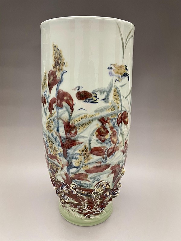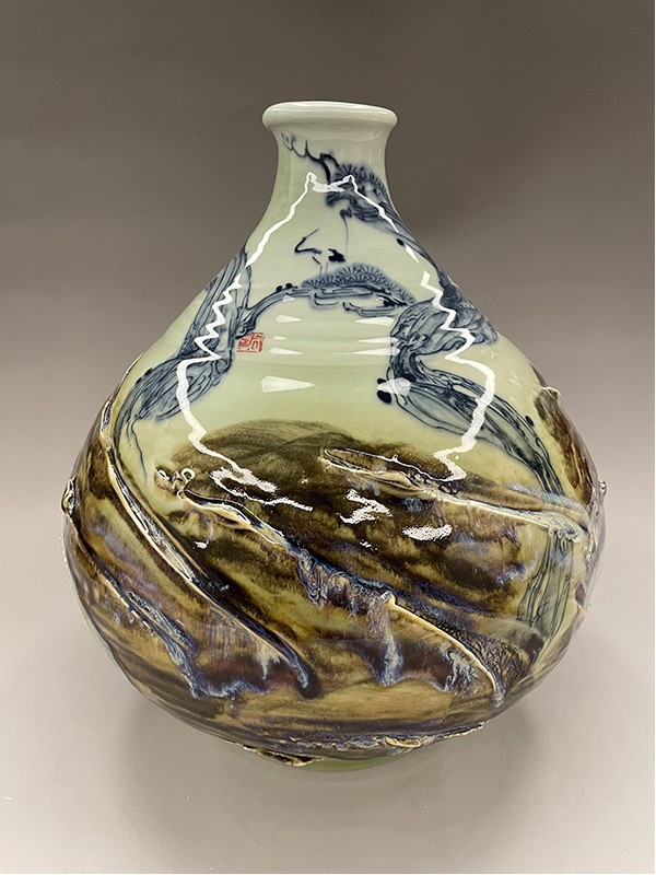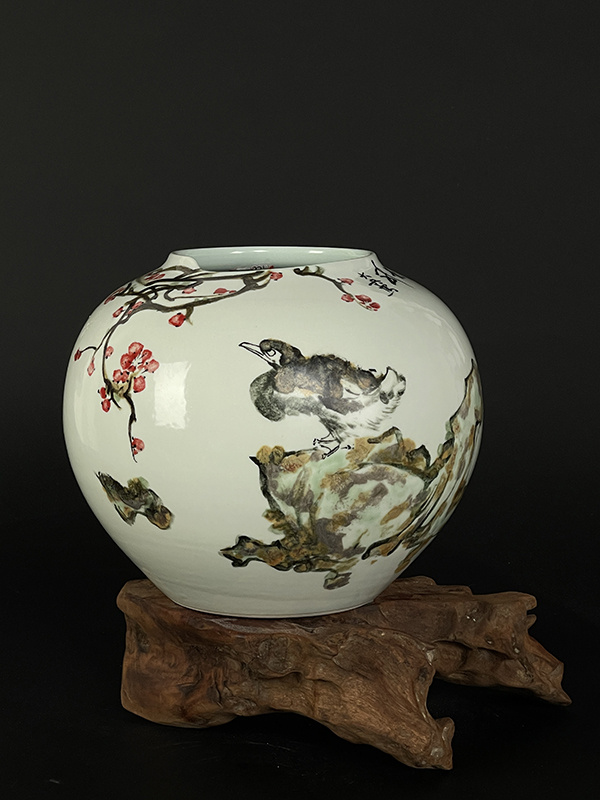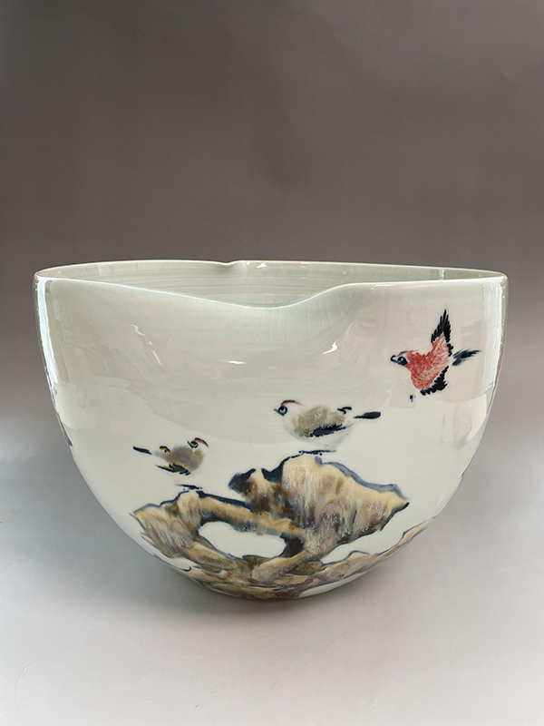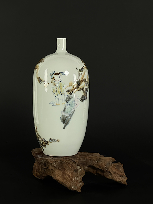 周志兵,江西省陶瓷藝術(shù)大師,景德鎮(zhèn)非遺傳承人。2007年畢業(yè)于景德鎮(zhèn)學(xué)院。畢業(yè)之后一直從事陶瓷繪畫工作,擅長高溫顏色釉,綜合裝飾,雕刻。在陶瓷多個(gè)方面都有探索和研究,但對高溫顏色釉一直是喜歡, 隨著學(xué)習(xí)和對顏主要有色釉的深入研究,本人逐漸涉及的題材也更加多樣,主要有花鳥與山水。花鳥主要怡情,具有宋人閑人雅趣的文人情懷,多為小品,相對于花鳥,我更喜歡山水的大氣之美,而顏色釉的流動(dòng)性和不可控性也剛好可以詮釋山水的格局,因此一直以來我都致力于山水創(chuàng)作。在創(chuàng)作同時(shí),本人也一直積極參加很多有關(guān)陶瓷方面的展覽,經(jīng)常會(huì)和一些老師一起到外地舉辦陶瓷展覽,也算是為弘揚(yáng)陶瓷文化盡一點(diǎn)綿薄之力。參加展覽之余,同時(shí)也會(huì)參加各種陶瓷評比活動(dòng),也是為了讓陶瓷專業(yè)人士對自己的認(rèn)同。